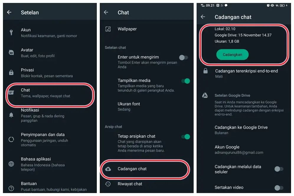 Mengembalikan Chat dari Google Drive